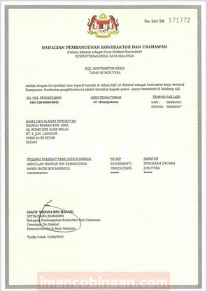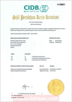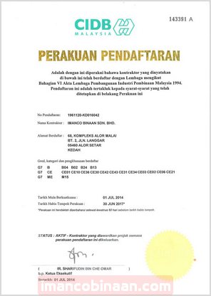 Imanco Binaan Sdn. Bhd.- Kontraktor Kelas A Kedah, Malaysia
